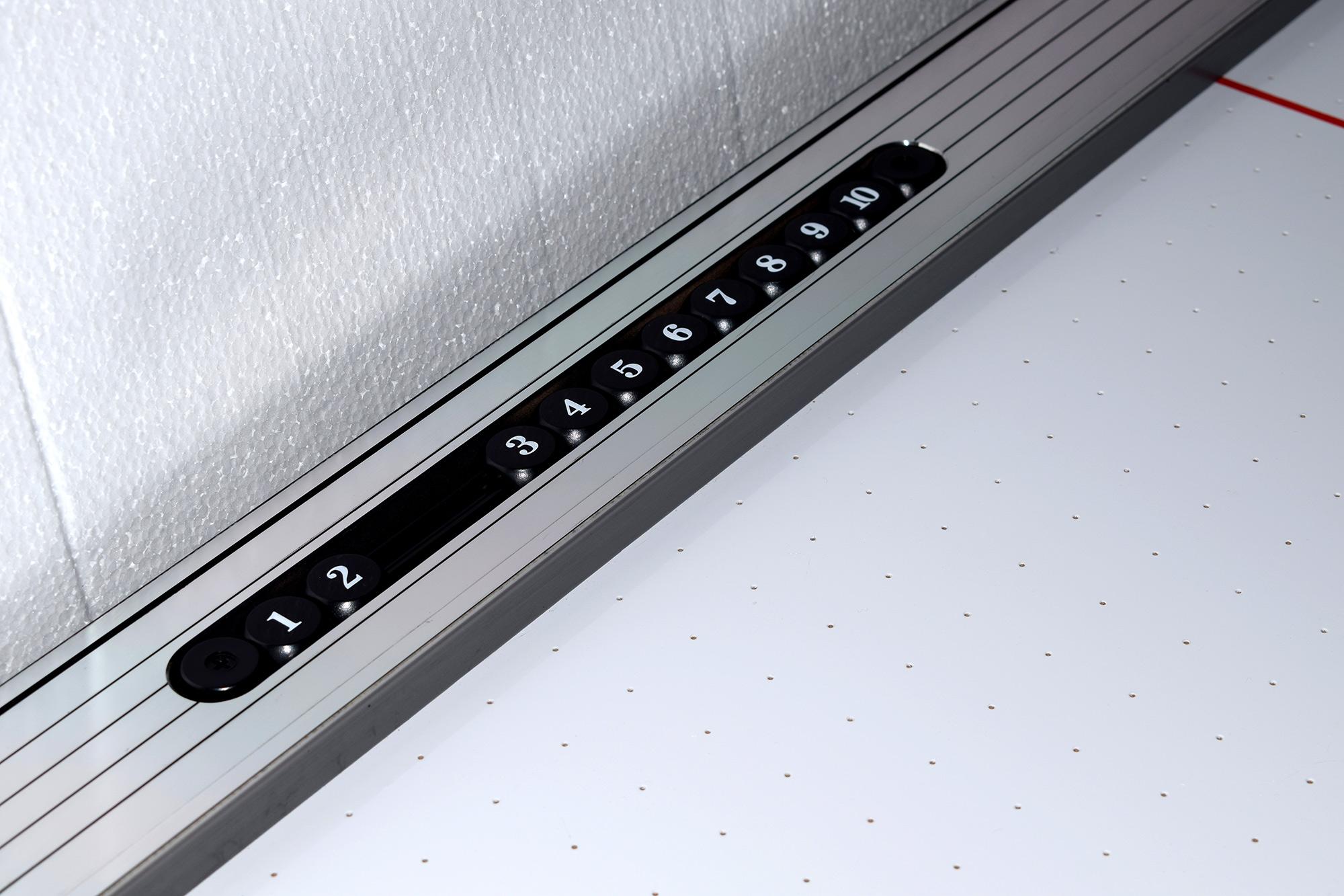 Der Airhockeytisch Toronto verfügt nicht nur über eine tolle, klare Optik, es ist auch ein äußerst stabiler Tisch mit hervorragenden Spieleigenschaften. Die High-Speed-Spielfläche ist aus einer speziellen 32 Millimeter starken, hochglanzversiegelten MDF-Platte gefertigt. Der Korpus besteht ebenfalls aus MDF mit einer kratz- und stoßfesten Oberseite und ist an den Innenbanden mit zusätzlich integrierten Schutzleisten versehen.