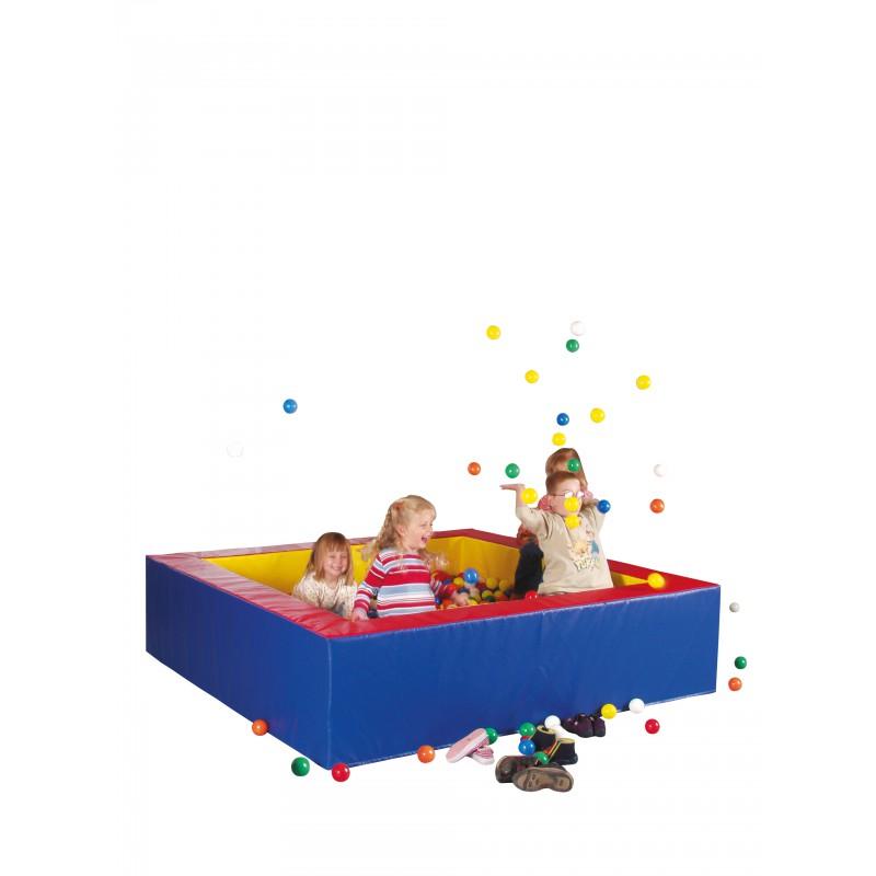 Alle Schaumstoffteile einschließlich des 10 cm starken Schaumstoffbodens sind fest miteinander verklebt. Auch der Bezug aus reißfestem Polyestergewebe wird in einem Stück gefertigt. Das Ballbad ist dadurch ausgesprochen stabil und hält besonders starken Beanspruchungen stand.