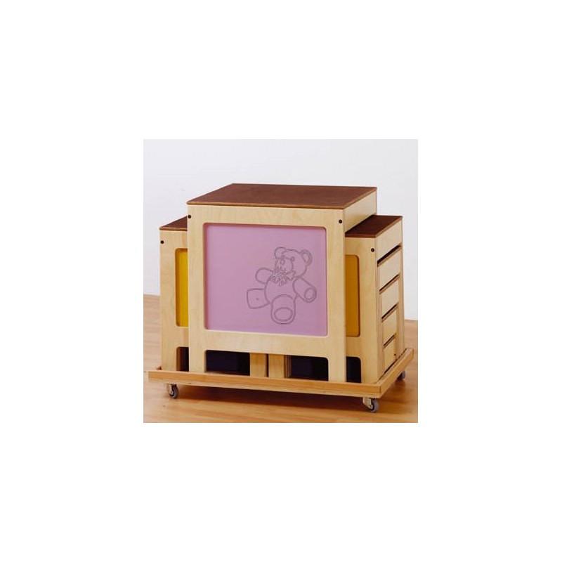 Transportwagen für Hockertreppe mit 4 Schwenkrollen, es wird der Wagen ohne die abgebildeten Hocker geliefert!