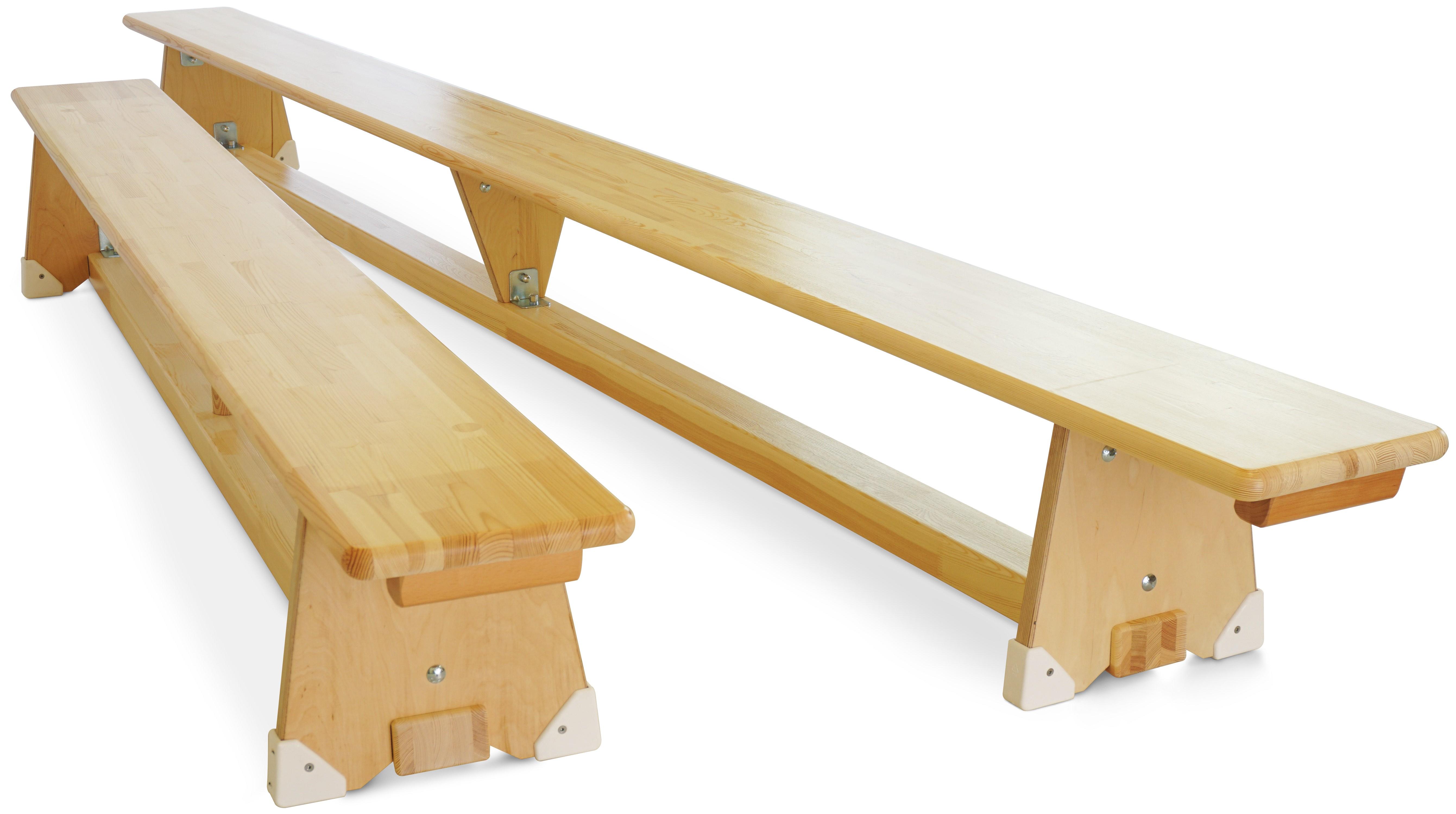An der Plattenunterseite befindet sich eine Leiste, welche das Einhängen in Sprungkästen und Sprossenwände ermöglicht. - breite Turnbank - Sitzflächen aus Nadelholz, Füße aus Hartholz - mit rutschhemmenden Gummischonern an den Turnbankfüßen -Breite: 27,5 cm -Höhe: 35 cm -Länge: 3,5 m