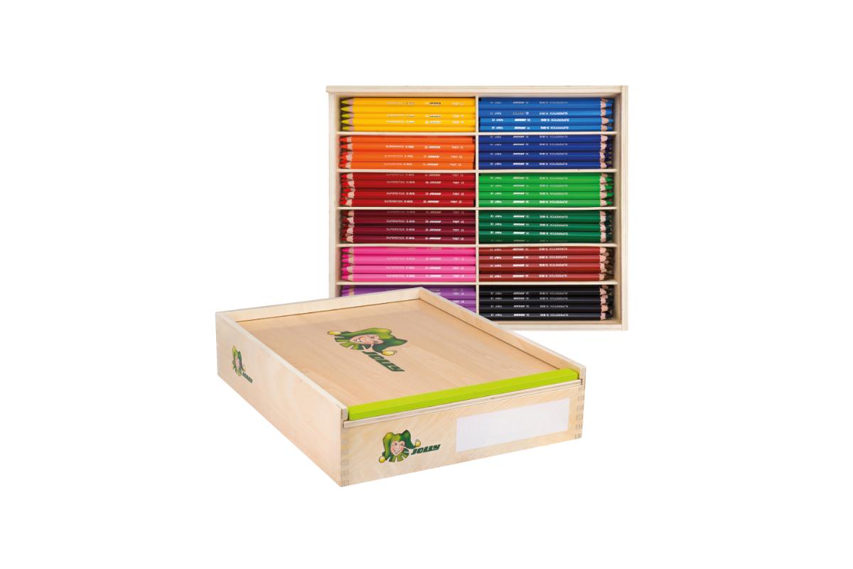 Mit Malsachen in der Holzbox von JOLLY gibts jetzt eine nachhaltige und ökologische Lösung für Kita und Kindergarten!