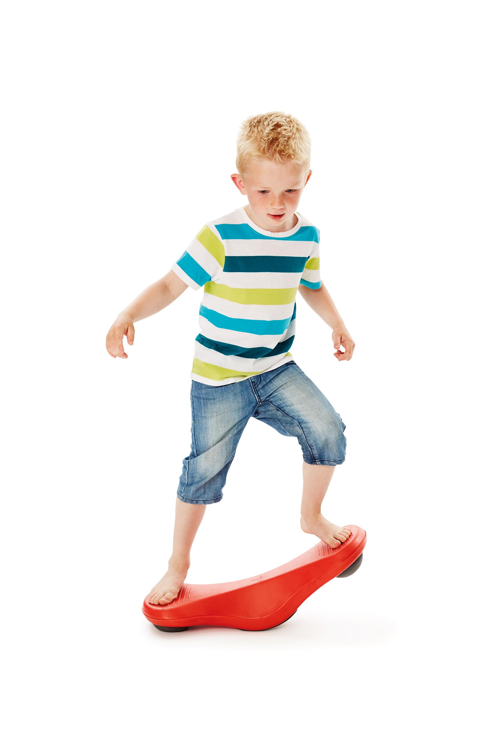 Die klassische Wippe in einem neuen Design. Komprimierbare Kunstgummi-Auflagen an der Unterseite der Wippe sorgen für einen weicheren und gleichzeitig dynamischeren Wippeffekt. Die Oberfläche der Wippe verhindert ein Abrutschen der Füße. Der zentrale Auflagepunkt der Wippe ist mit Kunstgummi versehen, was die Quetschgefahr mindert und Beschädigungen des Bodens verhindert. Hergestellt aus Kunststoff mit Kunstgummi-Einlage.